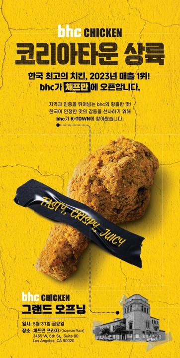 bhc Chicken/엘에이 LA USR 분식 치킨 0 0 2024.05.30 15:10 한국 매출 1위의 치킨집채프만 프라자(213) 915-0091 앨에이 한인타운 KoreatownLos Angeles 전화걸기 0 업소록닷컴 Upsorok.com 생활정보 TheKoreatown.com 부동산 알나무 Rtree.com